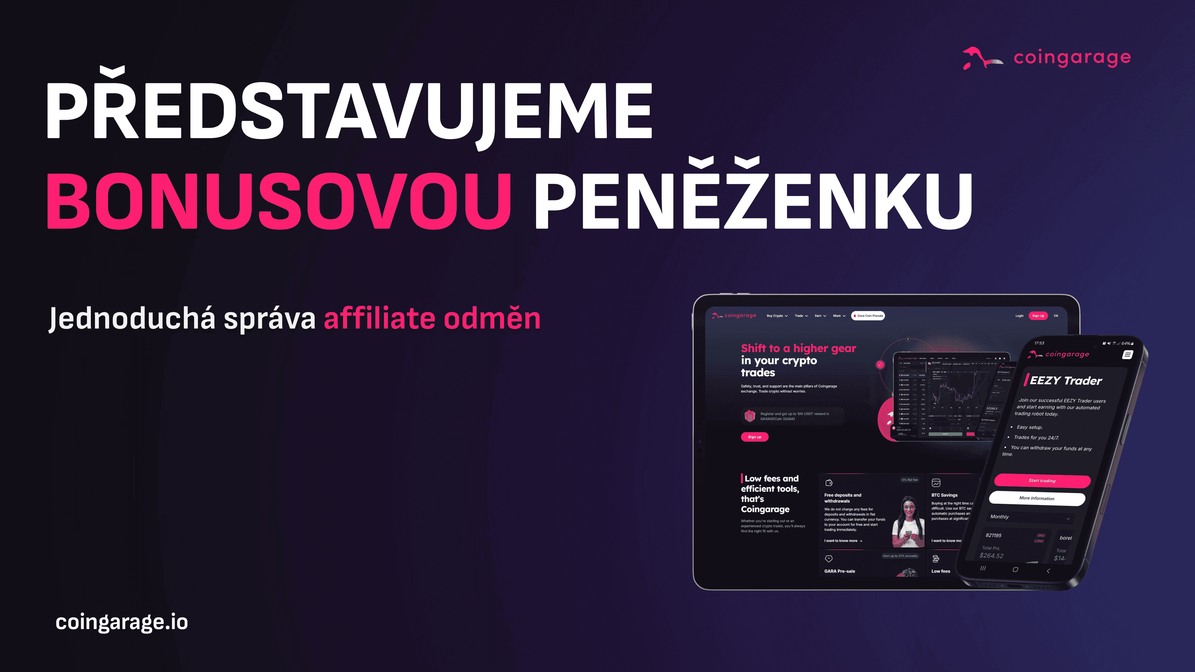 💼 Novinka na Coingarage: Bonusová peněženka pro přehlednou správu affiliate odměn
